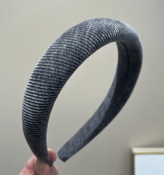 Grey Ribbed Corduroy Padded Headband