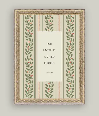 A Child Is Born Framed Antique Art