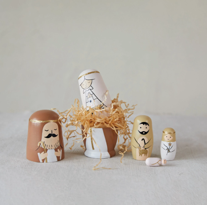 Wood Nativity Nesting Dolls