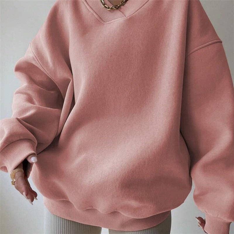 Casual Solid Color V-Neck Long Sleeve Sweatshirt