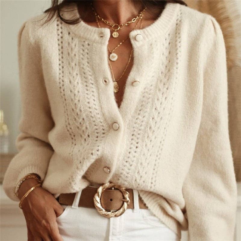 Solid Crochet Lace Button Front Cardigan