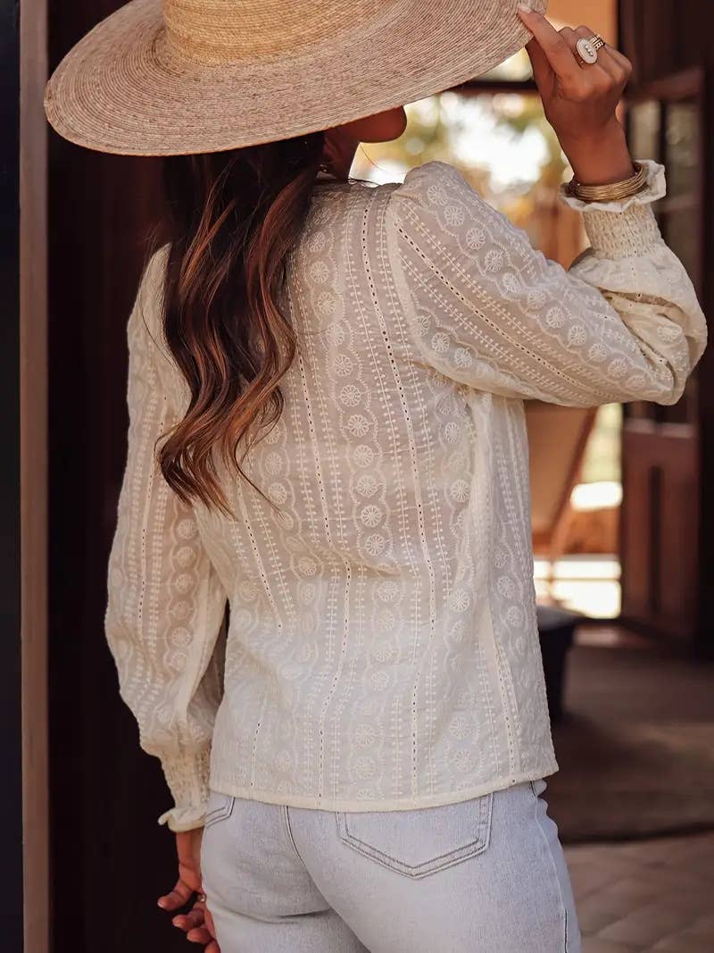 Boho Midnight Ecru Floral Ruffled Blouse