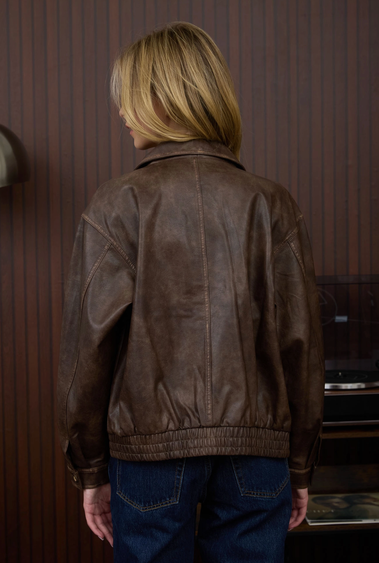 Collared Zip-Up Washed Faux Leather Jacket