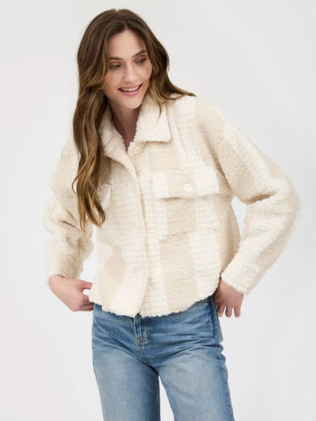 Striped Textured Faux Shearling Jacket