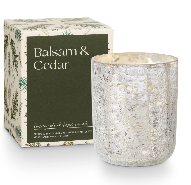 Balsam & Cedar Small Boxed Crackle Glass Candle
