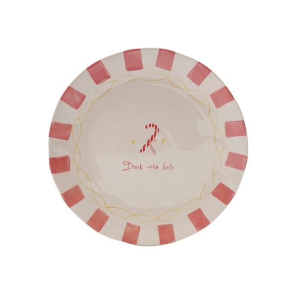 Hand-Painted Stoneware Candy Cane Plate