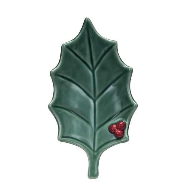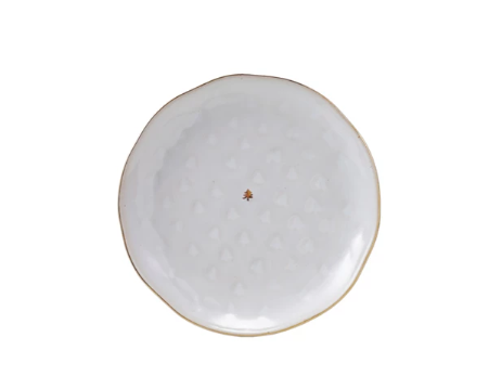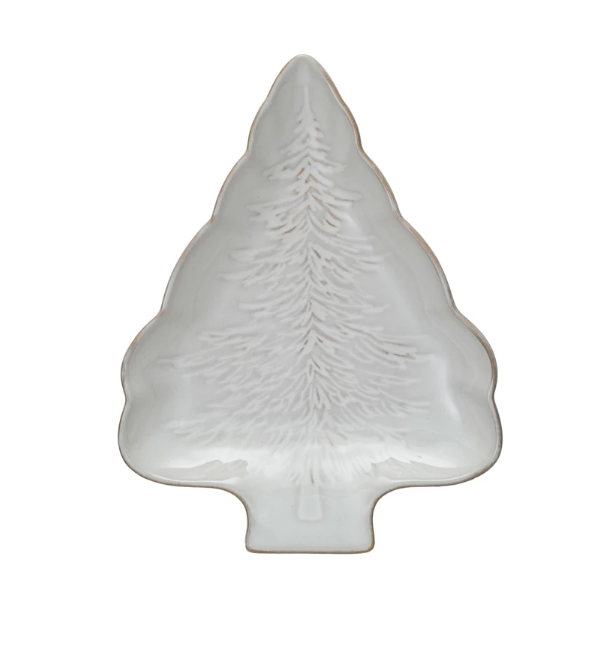 Stoneware Tree Shaped Plate with Reactive Glaze, White
