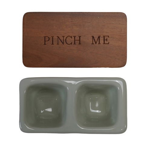 4-1/4"L x 2"H Stoneware Pinch Pot with Wood Lid